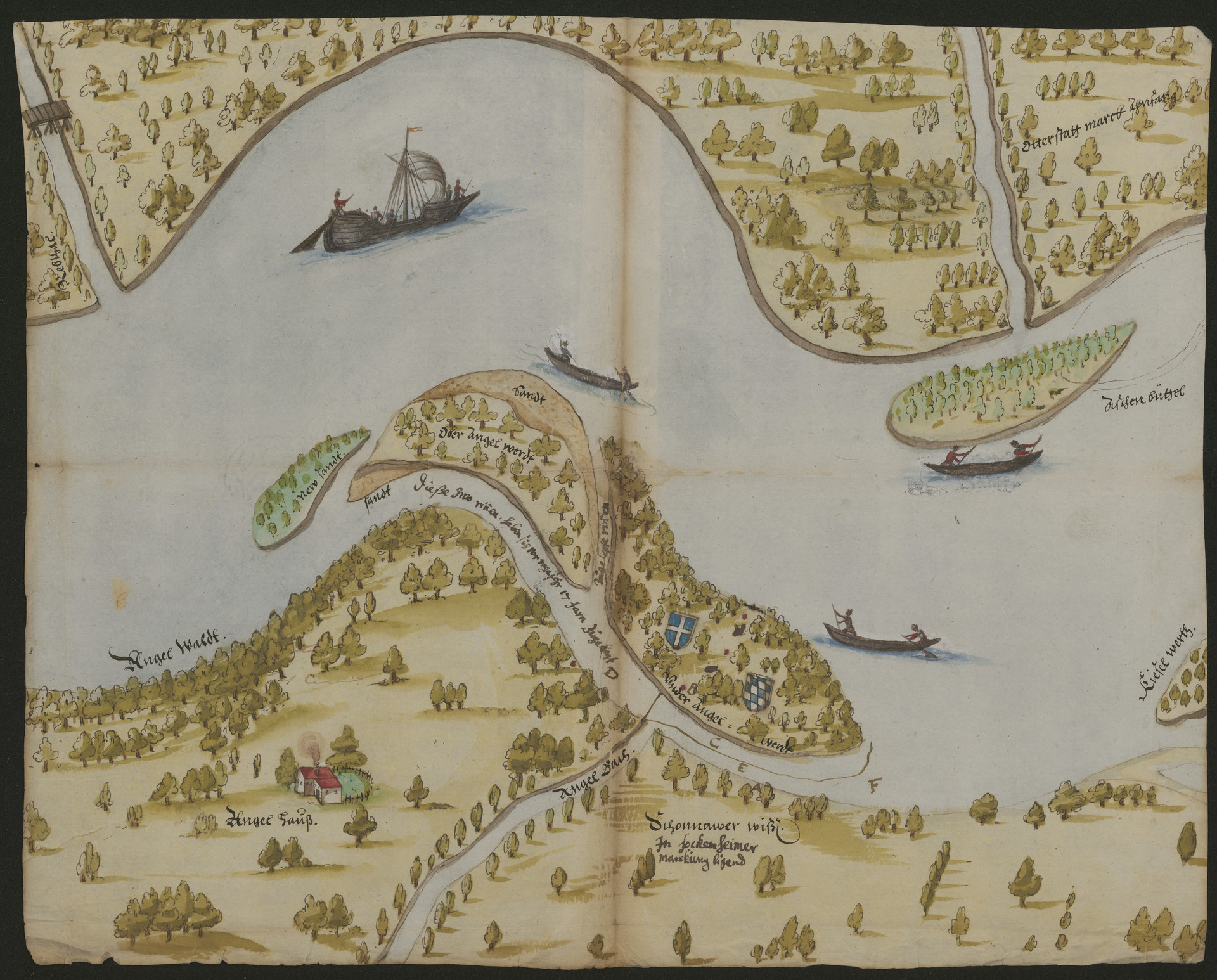 Ein großformatiges Aquarell aus dem Jahr 1607 zeigt die „Otterstadter und Speyerer Rheinauenlandschaft“. Aus der Vogelschau sieht man die Windungen des Stroms, eine Insel und mehrere Boote. Ein zweckfreies Idyll? Keineswegs!