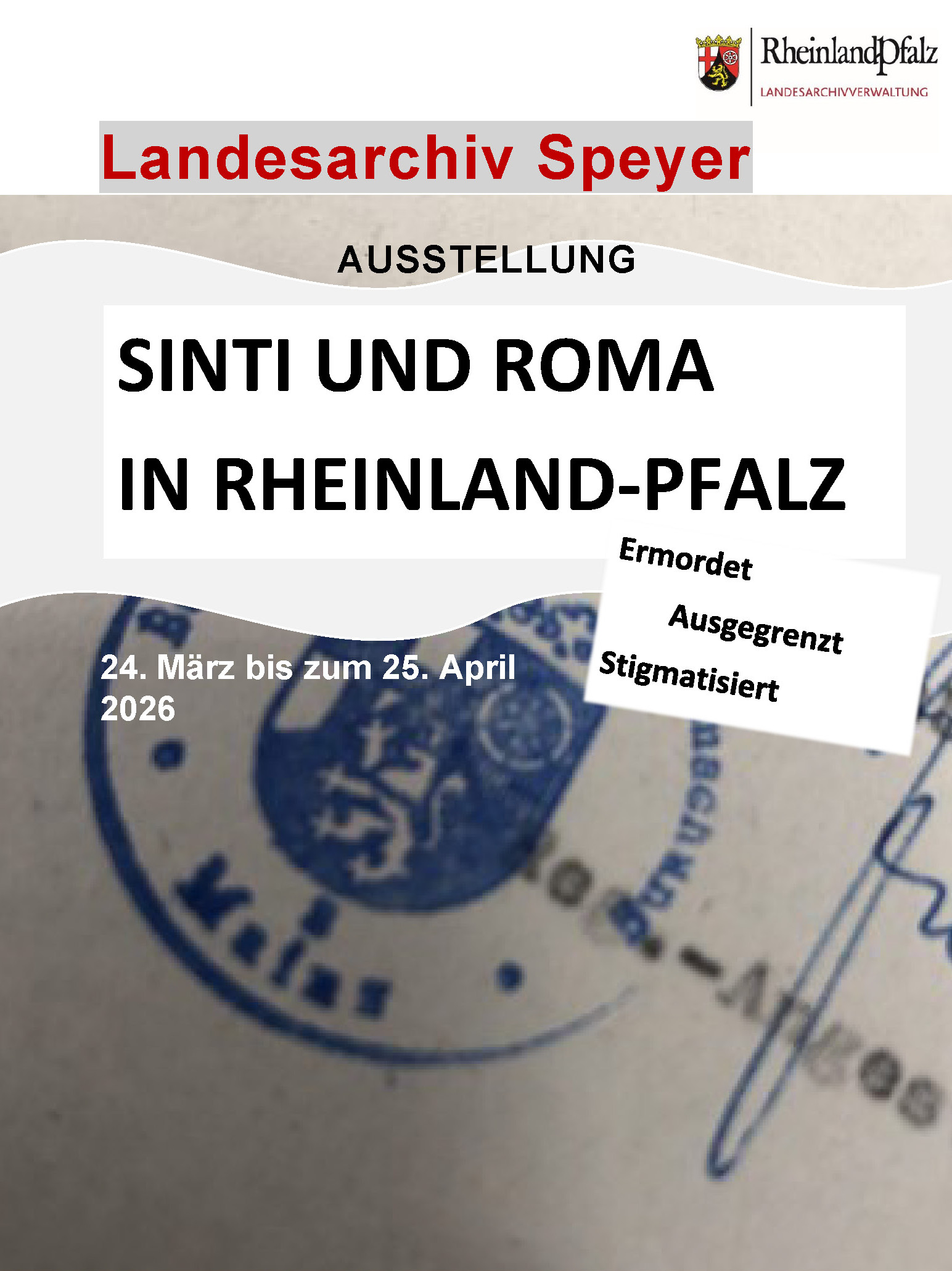 Das Landesarchiv Speyer zeigt die im Rahmen eines Studierendenprojektes an der Johannes-Gutenberg-Universität entstandene Wanderausstellung. Die Ausstellung zeigt, wie sich das Leben der Überlebenden nach 1945 gestaltete, welche Hindernisse sich ihnen im Prozess der „Wiedergutmachung“ aufbauten, wo Antiziganismus im Alltag fortbestand und wie sich Sinti und Roma für ihre Rechte einsetzten.