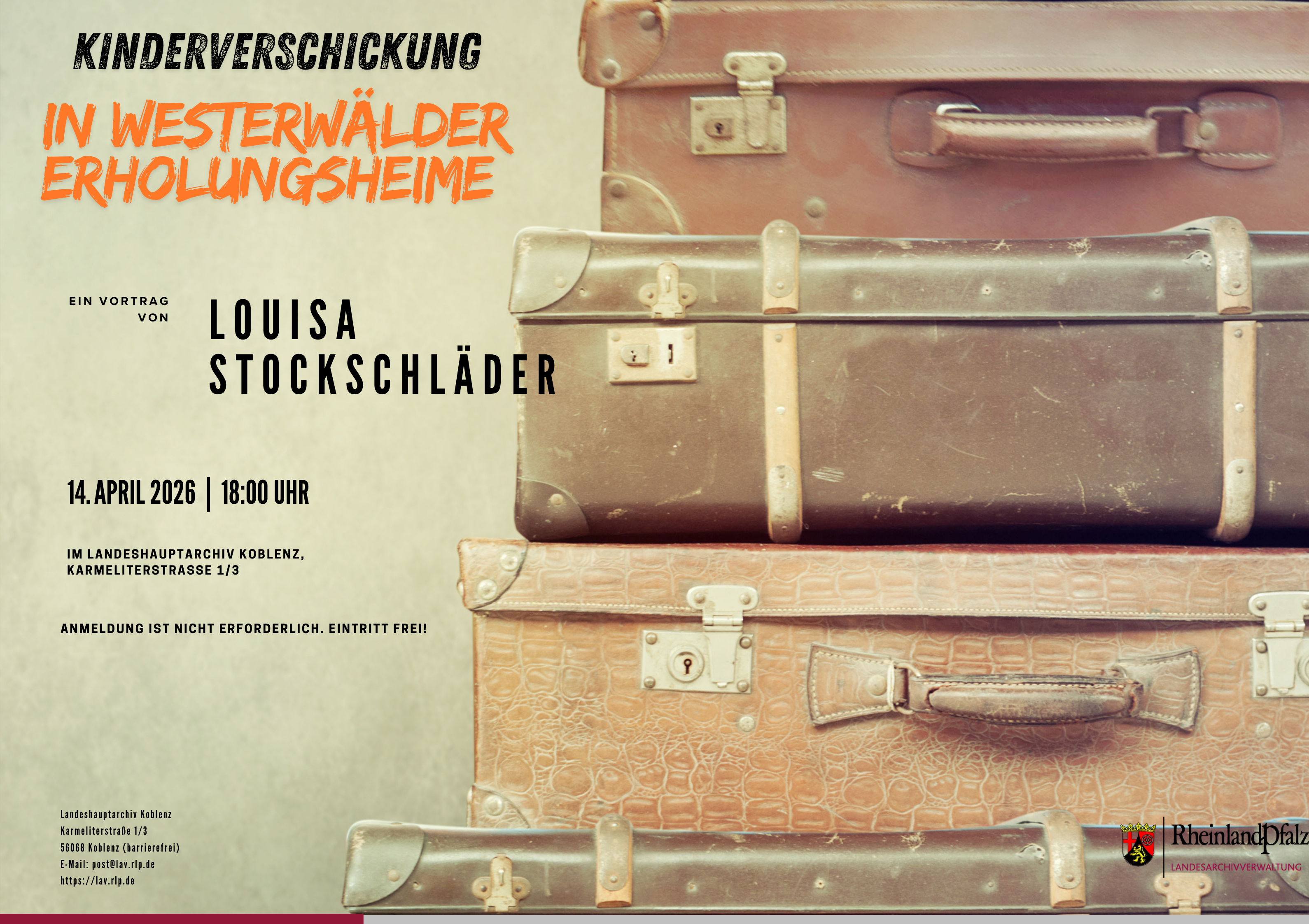 Einladung zum Vortragsabend im Landeshauptarchiv Koblenz, Karmeliterstraße 1-3, Dienstag, 14. April 2026, 18:00 Uhr